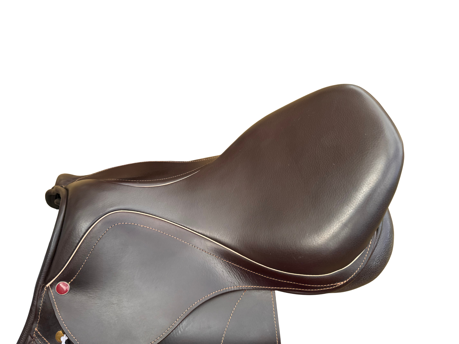 This high-performance jumping saddle is designed in the elegant French tradition, delivering a refined close-contact feel that allows for precise communication between horse and rider. Its medium-deep seat offers an ideal balance of security and freedom, enabling riders to maintain perfect position during flatwork, takeoff, and landing. At its foundation is a precision-engineered polymer tree—exceptionally strong, remarkably lightweight, and proven to retain both its shape and integrity even under years of demanding use. The tree is fully adjustable, allowing it to be widened or narrowed to accommodate changes in a horse’s musculature or to fit a variety of horses, making it a versatile choice for competitive riders, trainers, and multi-horse owners.
