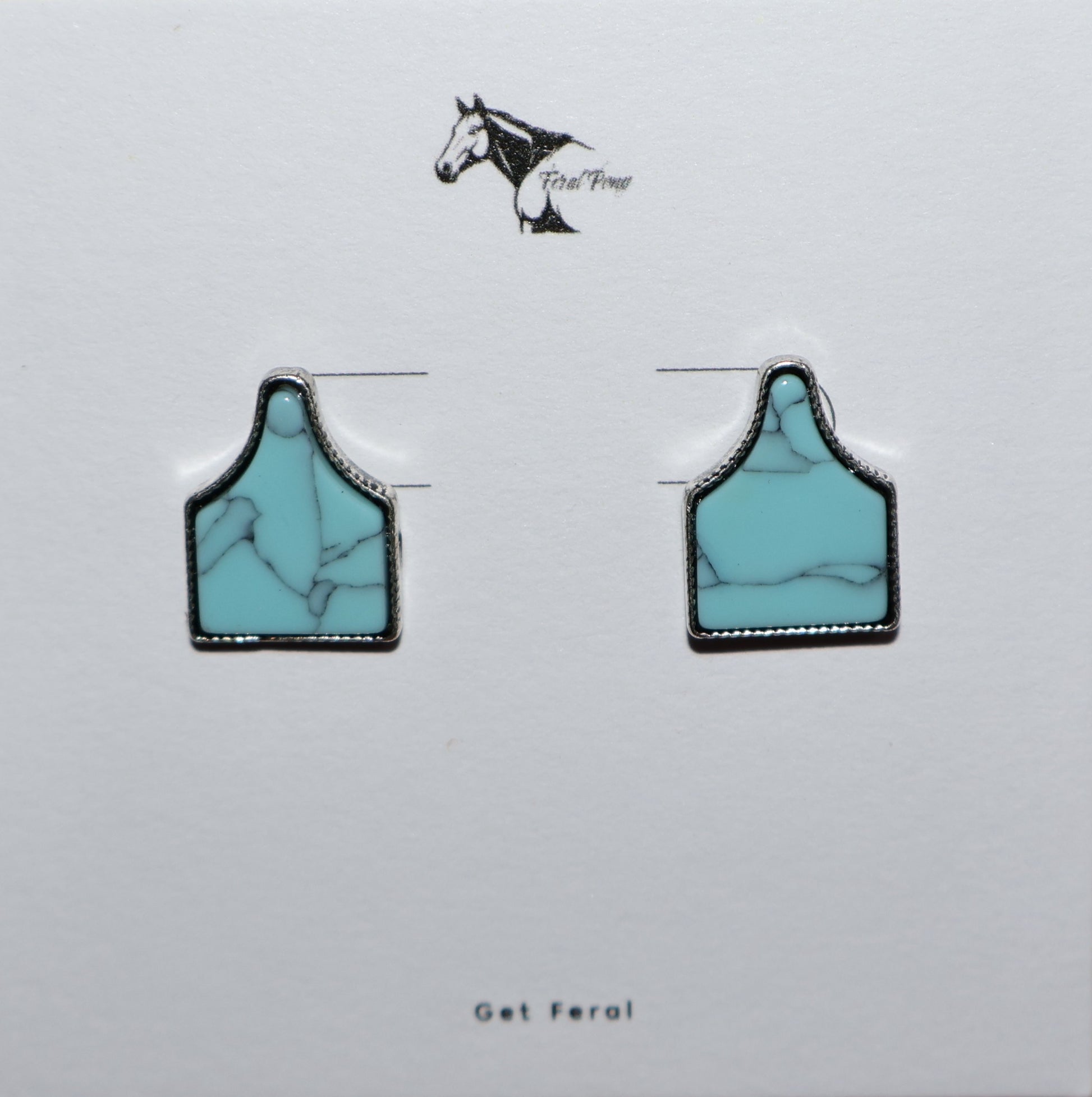 Turquoise Cattle Tag Earrings – Western-Inspired Studs by Feral Pony